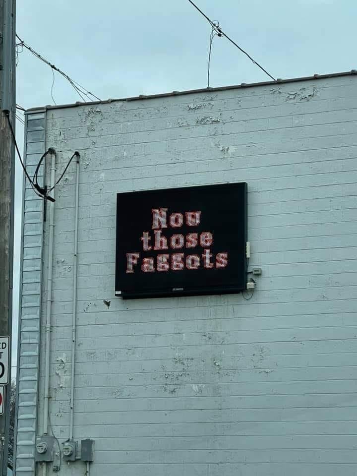 At the 200 block of North Richmond Street in Appleton, Wis., a digital billboard at the side of a locally owned business flashed “Now those f*****s” as part of a string of messages to the local government in attempts to show disgust in a recent project.